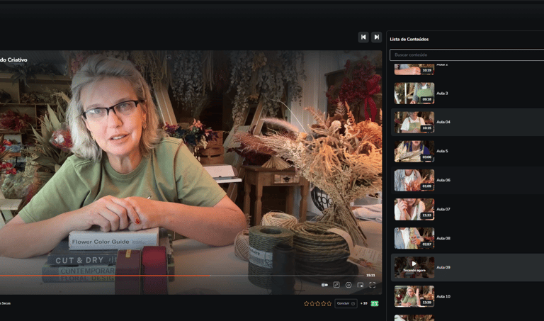 A plataforma oferece várias aulas de guirlandas, tanto com flores secas quanto com flores naturais!